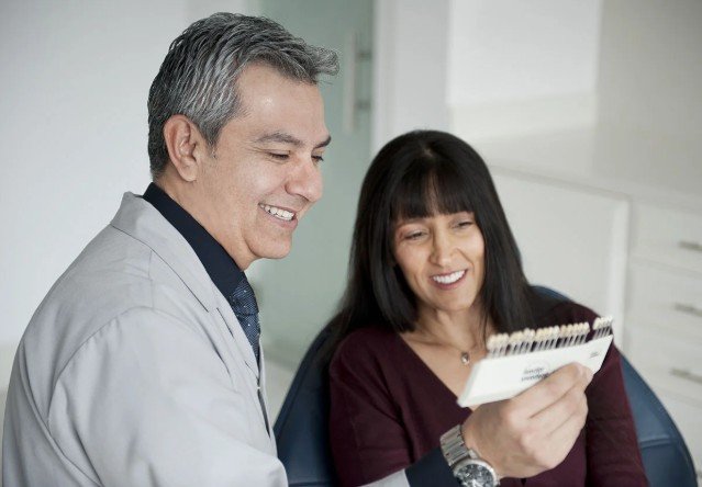 Teeth whitening safely brightens your natural tooth color without removing tooth structure. During treatment, your gums are protected and a bleaching gel is applied. A specialized light activates the gel, lifting stains and lightening teeth by up to 5 to 6 shades. We offer three whitening systems and will recommend the best option for you. Results can last up to three years, depending on diet, lifestyle, and your teeth’s natural characteristics. Whitening may not be suitable for patients with severe tooth sensitivity, microfractures, or certain medical conditions.