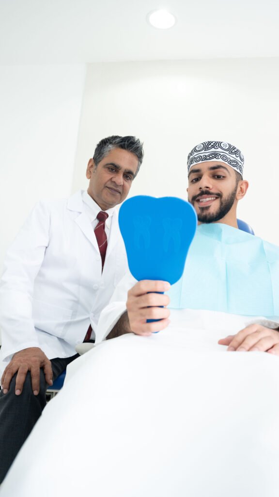 Periodontitis is an advanced gum disease caused by plaque bacteria, which can also threaten dental implants. At Muscat Dental Specialists, our periodontists tailor surgical and non‑surgical treatments to restore your gum health. We provide personalized hygiene guidance including optimal brushing techniques, flossing, and lifestyle advice along with a structured maintenance plan featuring professional cleanings and monitoring every 3 to 6 months to ensure lasting results and early intervention if needed.