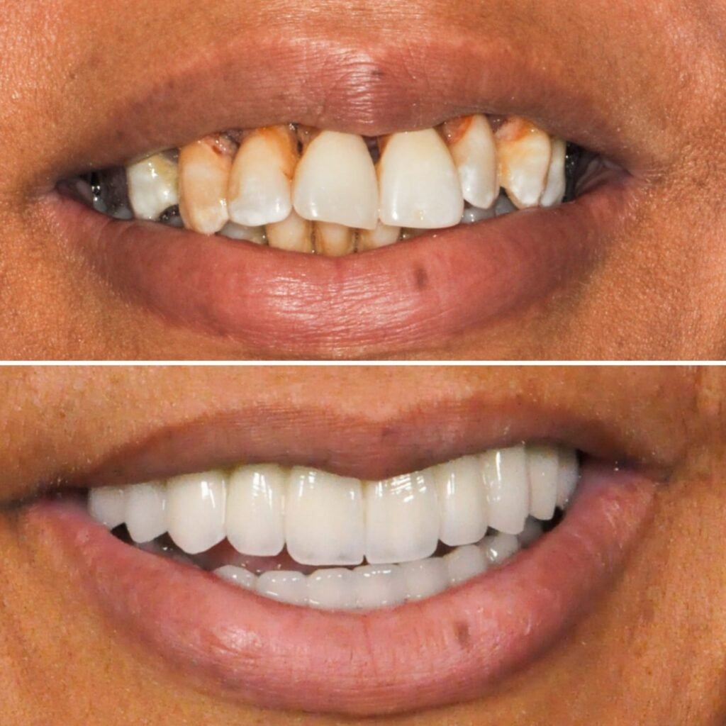 This treatment has risen in popularity and aims to create an exceptional result. It is a process which improves the smile through one or more cosmetic procedure. This may include veneers, composite bonding, implants, teeth whitening, cosmetic gum contouring and crowns.